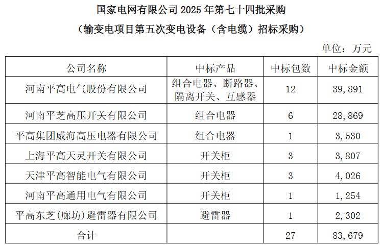 【大河财立方消息】11月7日,平高电气公告,日前,国家电网有限公司电子商务平台发布了“国家电网有限公司2025年第七十四批采购(输变电项目第五次变电设备(含电缆)招标采购)中标公告”“国家电网有限公司2025年第七十五批采购(输变电项目第五次变电设备单一来源采购)成交公告”。河南平高电气股份有限公司及子公司为相关项目中标单位,中标金额合计约为8.58亿元,占2024年营业收入的6.92%。
